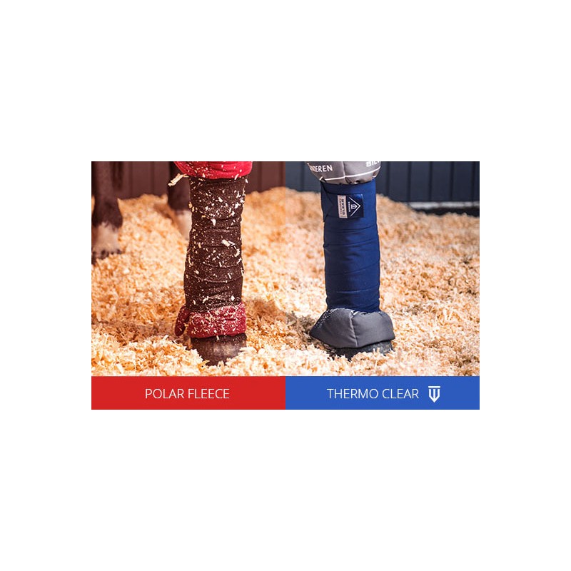L’isolation thermique en Thinsulate est entre autres utilisée dans les vêtements professionnels alpins, militaires et sportifs. Cette matière offre d’excellentes propriétés thermorégulatrices. Elle est respirante, non absorbante et évacue l’humidité de manière efficace afin d’éviter une surchauffe au niveau de la jambe du cheval. La matière ne comprime pas et ne glisse pas. Même après plusieurs lavages, les sous-bandes restent souples et douces.