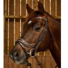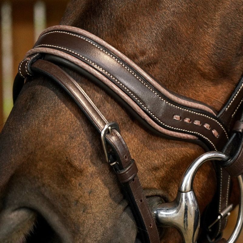 Il est décoré de surpiqures au niveau de la muserolle et du frontal. Frontal qui est d'ailleur en V pour plus de confort et d'élégence.