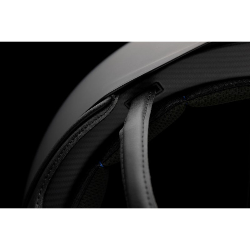 *La jugulaire semi-rigide annule tous les risques de basculement du casque en cas de mouvement violent.