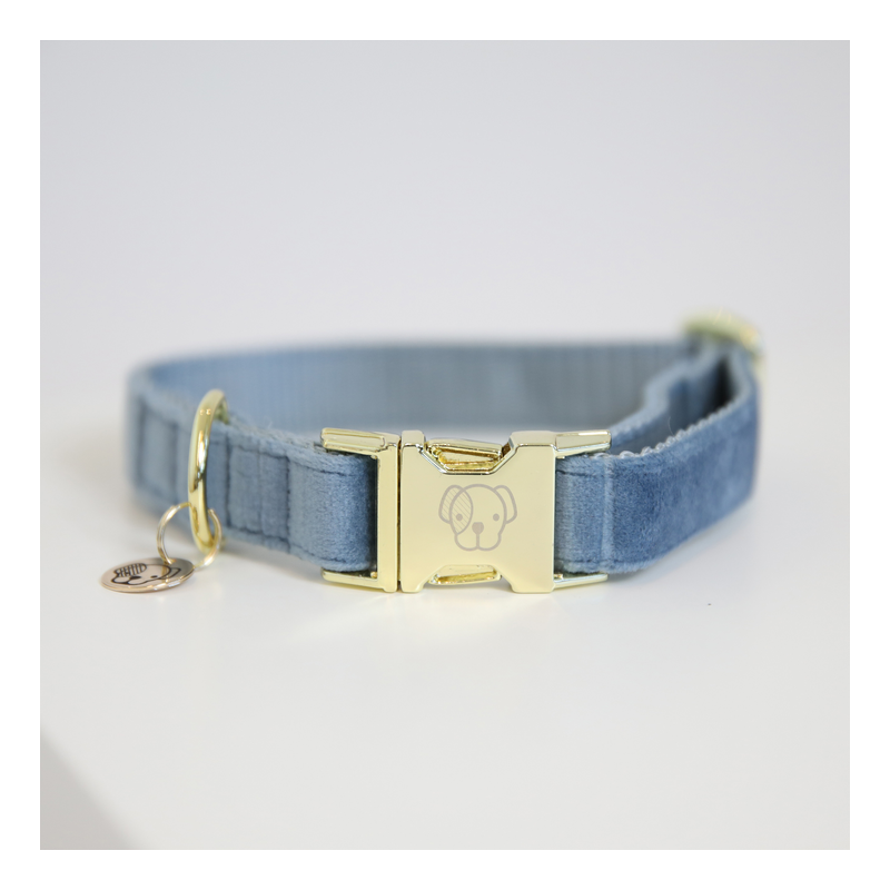 Le collier de chien Velvet comporte un anneau pour attacher la laisse assortie. La petite plaque avec logo Kentucky Dog Paw peut être gravée avec le nom du chien sur l’autre face. Ce collier a une fermeture très pratique et est facilement ajustable en taille.