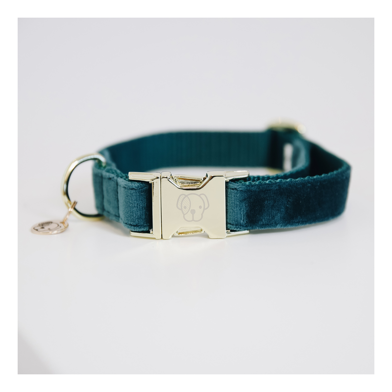 Le collier de chien Velvet comporte un anneau pour attacher la laisse assortie. La petite plaque avec logo Kentucky Dog Paw peut être gravée avec le nom du chien sur l’autre face. Ce collier a une fermeture très pratique et est facilement ajustable en taille.