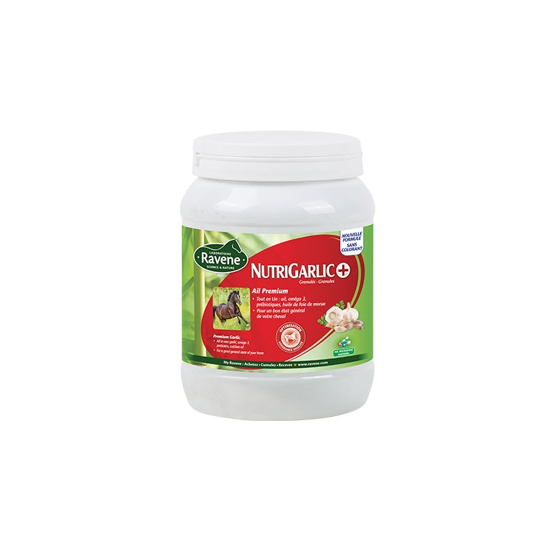 La formule unique de NUTRIGARLIC+ réunit les bienfaits de tous les produits naturels souvent utilisés pour améliorer l’état général et la forme des chevaux. En effet, l’ail, les prébiotiques et l’huile de foie de morue contiennent des éléments qui contribuent à l’amélioration des fonctions digestives et immunitaires, l’équilibre nutritionnel, la beauté des phanères et bien d’autres bénéfices… Dans NUTRIGARLIC+, les fractions essentielles de ces ingrédients ont été extraites et concentrées afin de faire bénéficier votre cheval de toutes leurs richesses grâce à une simple dose par jour.