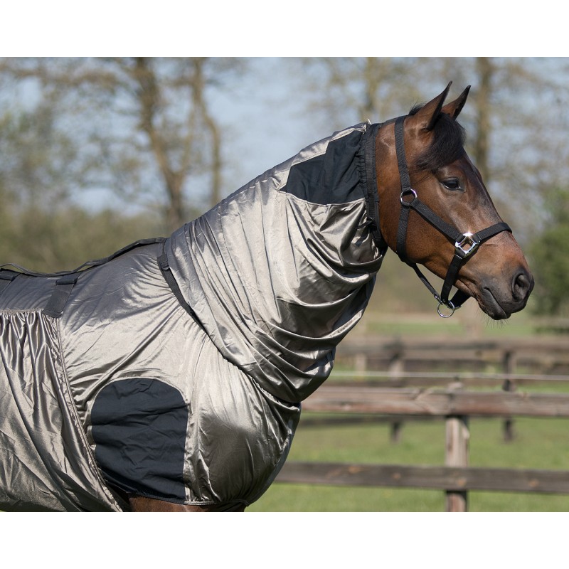 La couverture Confort anti-eczéma est très confortable, elle possède un insert dans le cou pour plus de confort et de liberté de mouvement. Elle protège le cheval contre les piqûres d'insectes. Les espèces culicidés en particulier peuvent provoquer une réaction allergique chez certains chevaux. L'utilisation d'une chemise anti-eczéma permet d'éviter les démangeaisons intenses et les égratignures qui suivent. Elle protège également contre les rayons du soleil. Fait d'un tissu extensible très respirant et comporte un rabat ventre séparé.