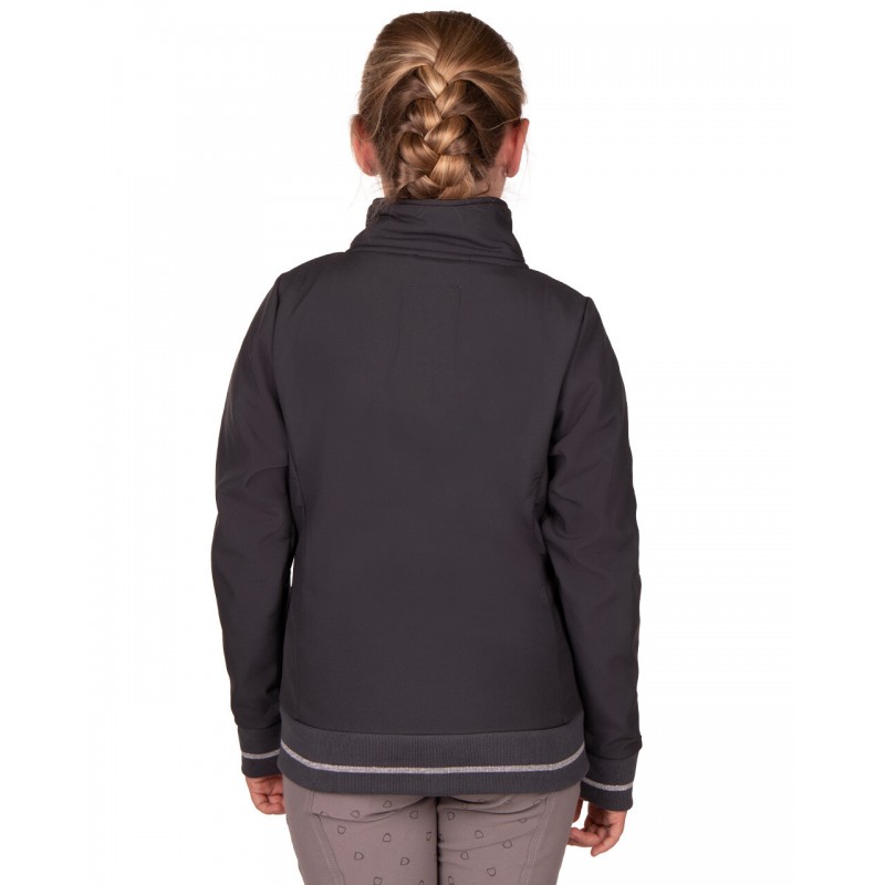 Veste sur mesure en softshell léger avec des détails argentés. L'intérieur de la veste est en molleton, ce qui en fait un vêtement idéal pour les jours d'été les plus frais. L'ourlet et les manches sont munis d'une bande élastique, ce qui permet à la veste de bien s'ajuster. L'élastique est traversé par une bande argentée qui est assortie aux fermetures éclair et aux broderies de couleur argentée.