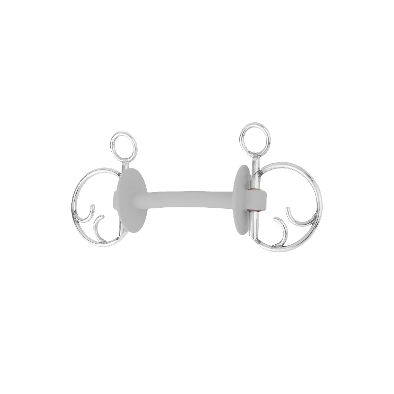 Le mors beris PRIME pose de nouveaux jalons en matière de communication entre le cavalier et sa monture. Cette embouchure extrêmement souple de forme parfaitement anatomique répartit la pression sur la langue et les barres de façon homogène. Les rondelles ovales intégrées, dont la jonction avec la pièce centrale a été modelée avec beaucoup de soin, évitent le pincement des lèvres et renforcent le maintien latéral du mors. Le mors Baucher combine efficacement l’effet de levier sur les branches du maxillaire inférieur, le développement de la pression sur la nuque et la modification de la position du mors dans la bouche du cheval. Trois possibilités différentes de fixation des rênes permettent d’utiliser le mors avec une intensité précise. Grâce à ses parties latérales massives, ce mors a un certain « poids » qui se traduit par une position posée dans la bouche.