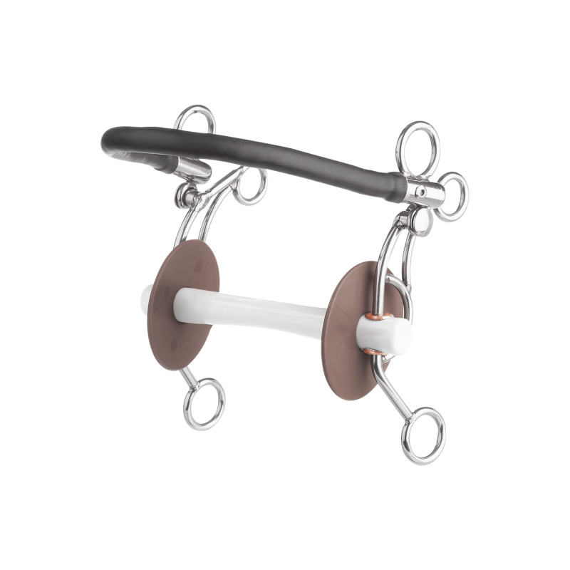 L’embouchure de forme anatomique appuie doucement et de façon égale sur la langue et les barres. Elle laisse plus de place à la langue et donc une plus grande liberté de mouvement. Tirer sur les rênes génère une pression homogène sur les barres inférieures et la langue. La langue et les barres ne peuvent pas être forcées sur le côté. L’utilisation de rondelles de mors empêche tout pincement des lèvres. De par sa forme légèrement bombée, le canon Comfort repose particulièrement doucement dans la bouche. Les embouchures avec un canon légèrement bombé sont connues pour ménager la bouche et être particulièrement douces. Alliée à notre matériau plastique beris, cette propriété augmente la douceur et le confort dans la communication entre le cavalier et sa monture. Le canon Comfort convient notamment aux chevaux jeunes ou sensibles.
