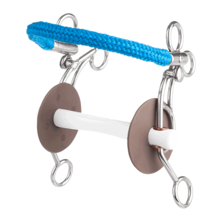 L’embouchure de forme anatomique appuie doucement et de façon égale sur la langue et les barres. Elle laisse plus de place à la langue et donc une plus grande liberté de mouvement. Tirer sur les rênes génère une pression homogène sur les barres inférieures et la langue. La langue et les barres ne peuvent pas être forcées sur le côté. L’utilisation de rondelles de mors empêche tout pincement des lèvres. De par sa forme légèrement bombée, le canon Comfort repose particulièrement doucement dans la bouche. Les embouchures avec un canon légèrement bombé sont connues pour ménager la bouche et être particulièrement douces. Alliée à notre matériau plastique beris, cette propriété augmente la douceur et le confort dans la communication entre le cavalier et sa monture. Le canon Comfort convient notamment aux chevaux jeunes ou sensibles. Le mors Tandem s’utilise avec une seule paire de rênes. Il développe une pression sur le chanfrein, les branches du maxillaire inférieur et la nuque. En tirant plus fort sur les rênes, le cavalier obtient même un léger effet releveur du mors. Ce mors est particulièrement adapté aux chevaux trop sensibles pour supporter l’effet d’un véritable mors dans la bouche, mais qui ne peuvent pas non plus être montés avec un hackamore.