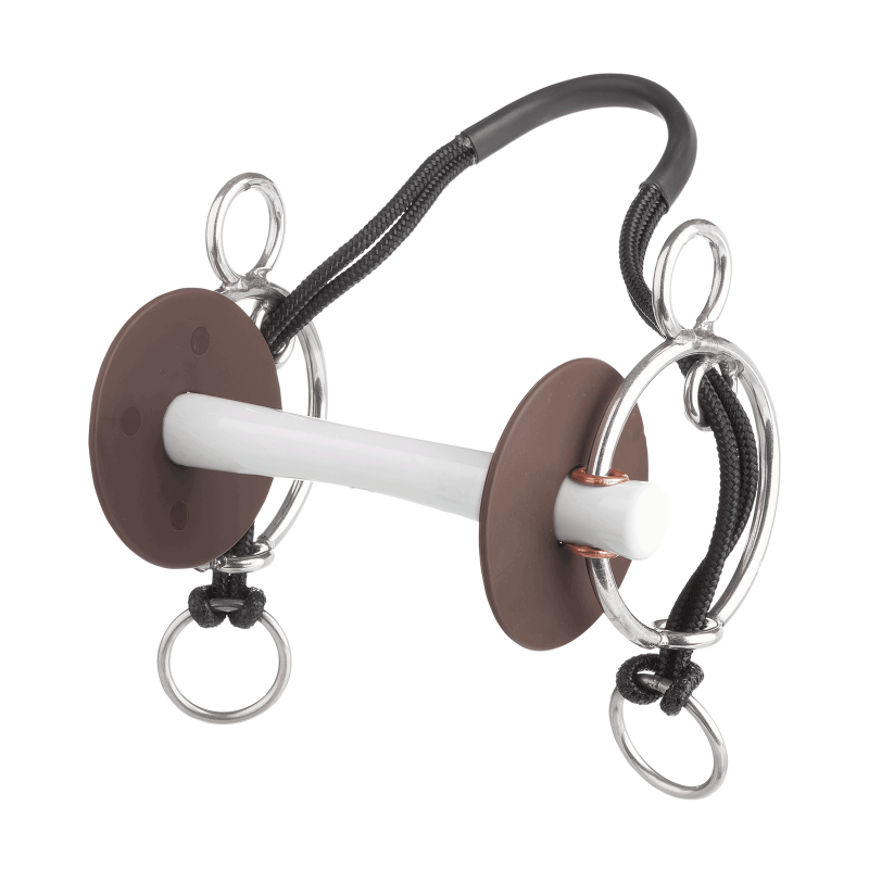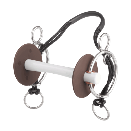L’embouchure de forme anatomique appuie doucement et de façon égale sur la langue et les barres. Elle laisse plus de place à la langue et donc une plus grande liberté de mouvement. Tirer sur les rênes génère une pression homogène sur les barres inférieures et la langue. La langue et les barres ne peuvent pas être forcées sur le côté. L’utilisation de rondelles de mors empêche tout pincement des lèvres. De par sa forme légèrement bombée, le canon Comfort repose particulièrement doucement dans la bouche. Les embouchures avec un canon légèrement bombé sont connues pour ménager la bouche et être particulièrement douces. Alliée à notre matériau plastique beris, cette propriété augmente la douceur et le confort dans la communication entre le cavalier et sa monture. Le canon Comfort convient notamment aux chevaux jeunes ou sensibles. Ce mors assure une répartition optimale de la pression sur le maxillaire inférieur et la bouche et est ainsi très bien toléré par le cheval. La deuxième paire de rênes agit comme un dessous de muserolle que le cavalier peut tirer ou relâcher selon les besoins. Ce mors convient très bien aux chevaux particulièrement puissants et pleins d’entrain.