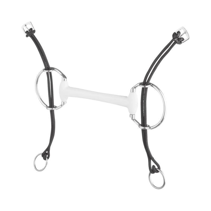 Le canon à olives est une embouchure universelle qui repose très doucement dans la bouche du cheval. Les olives latérales empêchent efficacement tout pincement des lèvres. Tirée plus puissamment, la deuxième paire de rênes attachée au mors releveur provoque un abaissement et un relèvement du mors dans la bouche : l’effet est ainsi amplifié. Ce système est très bien adapté aux chevaux qui ont tendance à s’appuyer sur le mors. Il est aussi utile pour obtenir un plus grand redressement.
