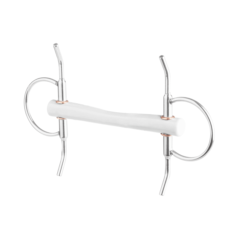 L’embouchure de forme anatomique appuie doucement et de façon égale sur la langue et les barres. Elle laisse plus de place à la langue et donc une plus grande liberté de mouvement. Tirer sur les rênes génère une pression homogène sur les barres inférieures et la langue. La langue et les barres ne peuvent pas être forcées sur le côté. L’utilisation de rondelles de mors empêche tout pincement des lèvres. De par sa forme légèrement bombée, le canon Comfort repose particulièrement doucement dans la bouche. Les embouchures avec un canon légèrement bombé sont connues pour ménager la bouche et être particulièrement douces. Alliée à notre matériau plastique beris, cette propriété augmente la douceur et le confort dans la communication entre le cavalier et sa monture. Le canon Comfort convient notamment aux chevaux jeunes ou sensibles. Le mors à aiguilles adopte une position stable et très douce dans la bouche. Il assure un encadrement latéral sûr, sans risque de pincement de la peau ou des lèvres par l’arrêtoir coudé. Ce mors convient aux chevaux qui nécessitent clairement un appui et un guidage latéral lors des virages. Il peut s’agir là aussi bien de chevaux puissants que de jeunes chevaux sans expérience. Ce mors est utilisé de préférence par les cavaliers qui pratiquent le saut d’obstacles afin de pouvoir réaliser des courbes serrées.