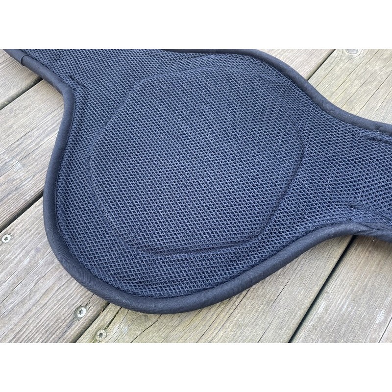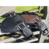 La sangle bavette Mesh SAFETY s'adapte aux selles mono-quartiers avec des sanglages bas. Elle est dotée d'élastiques aux deux extrémités afin d'apporter plus de confort au cheval. Elle est également composée d'un mousqueton central pour fixer les enrênements et dotée d'un rabat en cuir aimanté le recouvrant pour plus de sécurité. L'intérieur en tissu mesh à mémoire de forme permet un confort optimal et garanti une meilleure aborption de la transpiration, Elle s'utilise lors de séance d'entraînement ou lors de concours de saut d'obstacle pour protéger le cheval d'éventuels chocs provoqués lors de la flexion des antérieurs.