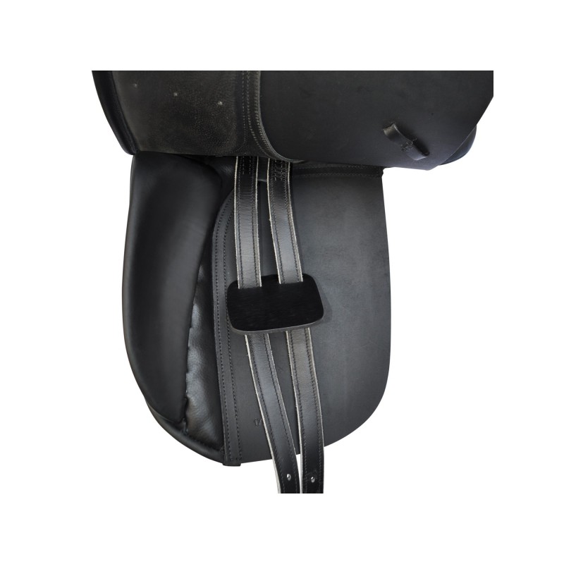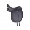 Une excellente selle pour apprendre ou se perfectionner en dressage. Son siège large, rembouré feutre/mousse, ses matelassures laine la rendent très confortable. Son arçon anglais semicreux en bois, renforcé acier, est souple et résistant. Quartiers en cuir de buffle. Troussequin arrondi. Siège, avancées et matelassures en cuir vachette soft pleine fleur. Livrée avec housse