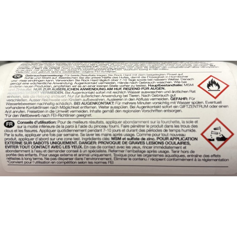 Durcisseur de haute qualité développé pour protéger les sabots cassants, renforcer les soles moles et désinfecter les fourchettes sujettes aux attaques bactériennes et fongiques. Contient du sulfure naturellement bio disponible pour une intégrité maximale de la corne du sabot.