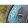 Toujours cette silhouette so chic des tapis de selle Pénélope Collections mais cette année, disponible dans un velours très doux, très classe et savoureusement vintage. On retrouve la même belle découpe de dos qui permet de bien dégarrotter, deux passants de sangle pour un maximum de stabilité et une doublure noire, peu salissante. Tout autour, un galon noir et un Point sellier verni noir apporte cette touche Pénélope reconnaissable entre mille. Côté broderie, à gauche, on trouve le logo Pénélope en contraste et à gauche, le blason avec le monogramme PL à l'intérieur. Enfin, notre tapis Point Sellier en velours est fabriqué en France dans notre atelier.
