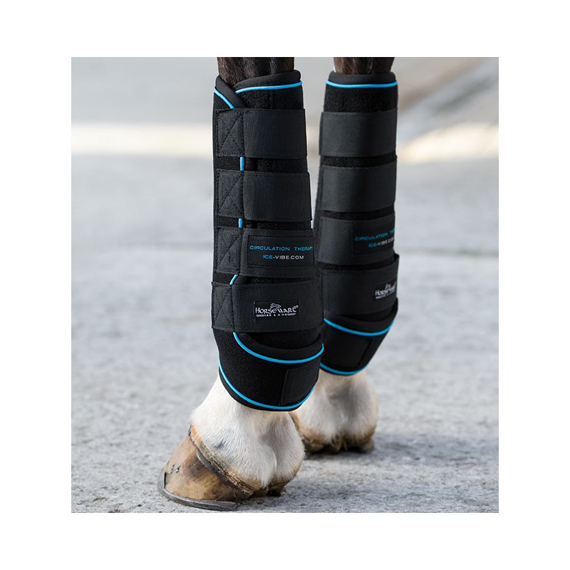 Dotées d'un extérieur en néoprène et de poches intérieures élastiques, ces guêtres apporte à votre cheval les bienfaits du froid et des vibrations. Elles englobent correctement le membres, elles pourront donc être utilisées pour les antérieurs comme pour les postérieurs.