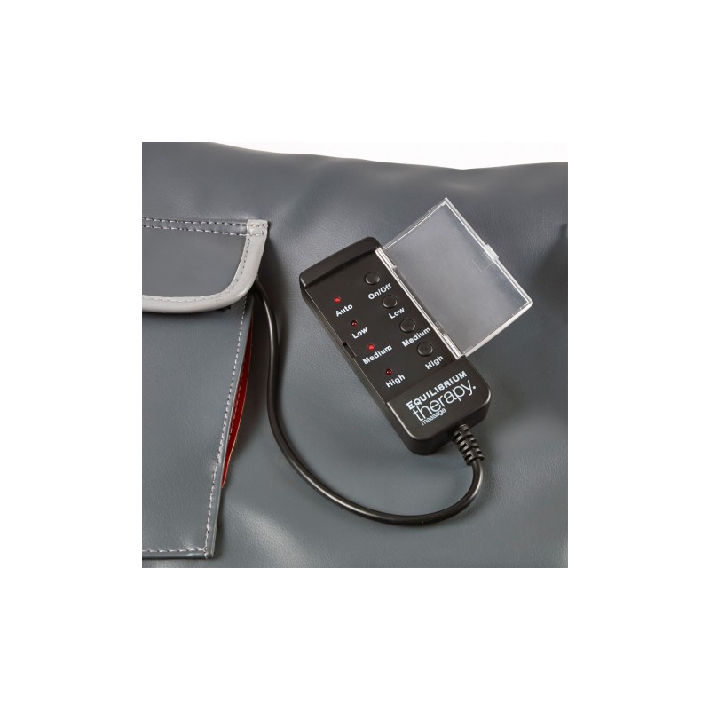 Les résultats sont cliniquement prouvés ! Par une relaxation et un assouplissement du dos, le massage que procure ce tapis favorise la récupération de votre cheval, et ainsi, optimise sa performance ! Léger, confortable et pliable, la forme anatomique du tapis suit parfaitement le dos du cheval, pour une action optimale du garot aux quartiers de l’équidé. Des sangles permettent d’adapter le tapis à la plupart des chevaux. Pour améliorer le travail sur les muscles, chaque cycle de massage alterne entre 3 effets massant : « pulse » (pulsations), « vibration » (vibrations), « wave » (ondes). Grâce à la télécommande waterproof, vous pouvez optez pour l’une des trois intensités de massage : - Léger, pour une relaxation après l’effort (mode par défaut), - Moyen, pour réchauffer les muscles avant l’effort, - Intense, pour agir sur les problèmes dorsaux. Livré avec 1 batterie haute performance (autonomie de 12 séances de 30 minutes), 1 chargeur universel, 1 sac de transport en nylon.