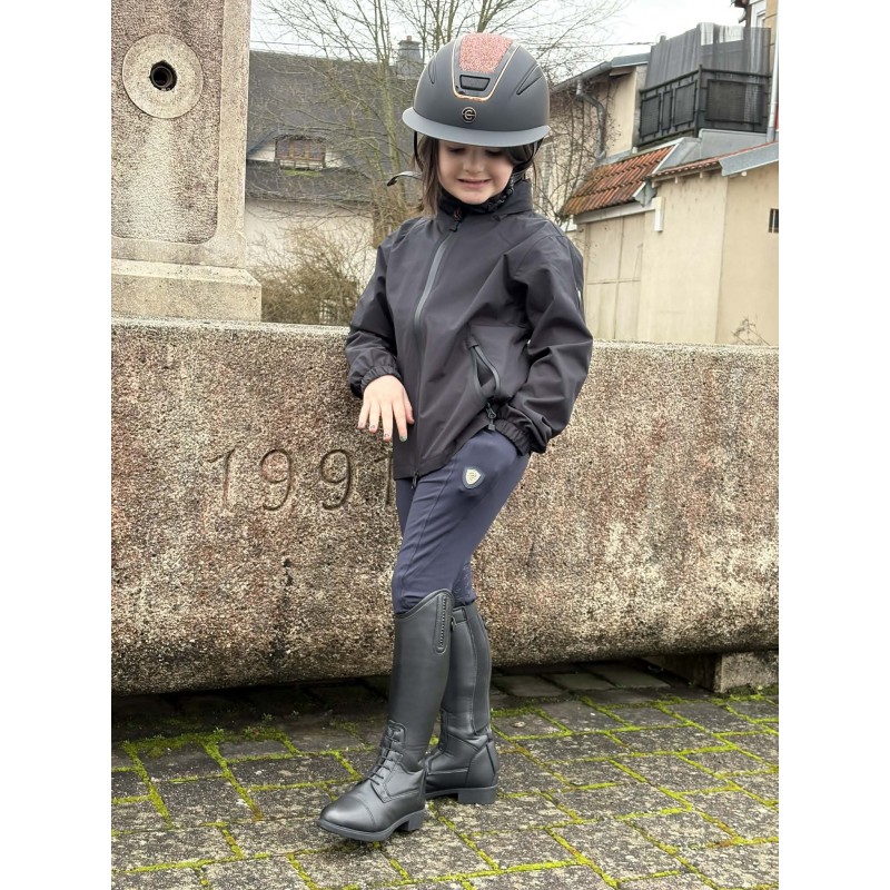 Ce pantalon d’équitation enfant Covalliero Full Grip est conçu pour offrir confort, maintien et liberté de mouvement lors de la pratique de l’équitation. Sa matière souple et respirante s’adapte parfaitement aux mouvements du cavalier, garantissant un excellent confort aussi bien à cheval qu’à pied. Doté d’un full grip en silicone, il assure une adhérence opti.male en selle, améliorant la stabilité et la sécurité pendant le travail à cheval. Sa coupe ergonomique épouse la morphologie de l’enfant sans comprimer, tandis que les bas de jambe ajustés facilitent l’enfilage des bottes ou mini-chaps. Idéal pour l’entraînement comme pour un usage quotidien au centre équestre, ce pantalon allie performance technique et style sobre et élégant