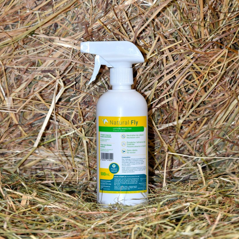 Natural’Fly est une source naturelle d’huiles essentielles et de vinaigre de cire visant à neutraliser l’odeur du cheval responsable de l’attirance des insectes – Sous forme de spray de 500 ml.
