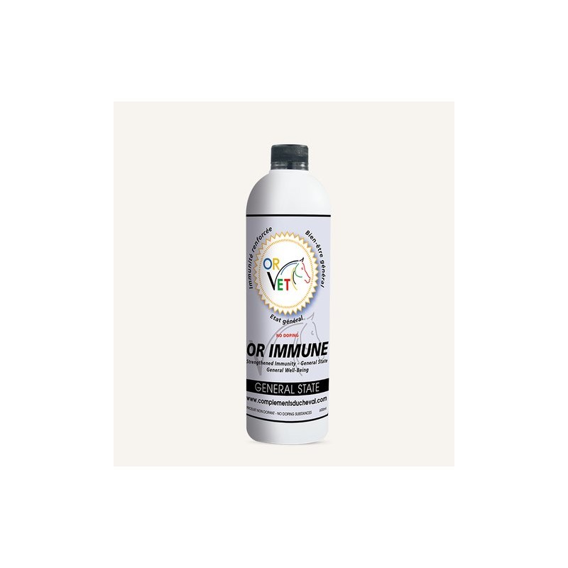 Or-Immune est un aliment complémentaire qui aide l’organisme du cheval à lutter contre les attaques extérieures en stimulant son système immunitaire.