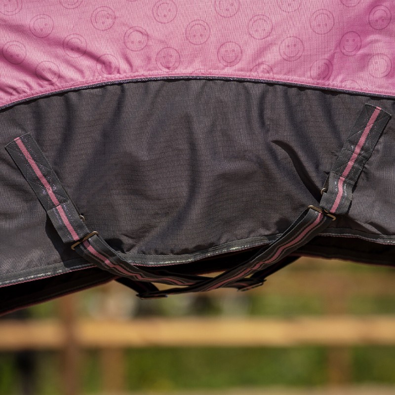 Cette couverture de la collection d'été 2026 est résistante, imperméable et respirante. Elle protège votre cheval de la pluie et du vent pendant les mois d'été. Le devant allongé évite les béances au niveau du poitrail, en particulier pour les chevaux de forte corpulence. Les anneaux en D au niveau de l'encolure rendent la couverture encore plus pratique et permettent d'y attacher un collier séparé.