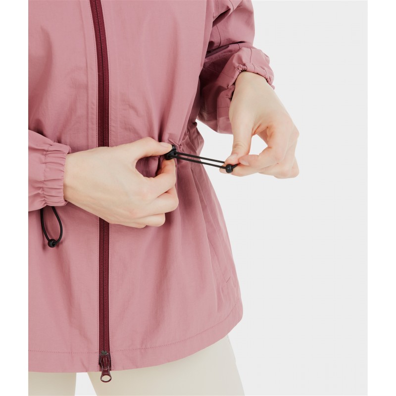 Légère, tous les systèmes d’ajustement ont été étudiés pour préserver le poids de la veste. La capuche et les poignets s’ajustent grâce à de fines bandes élastiques. La taille s’adapte à toutes les morphologies et donne un look moderne et féminin à la veste.