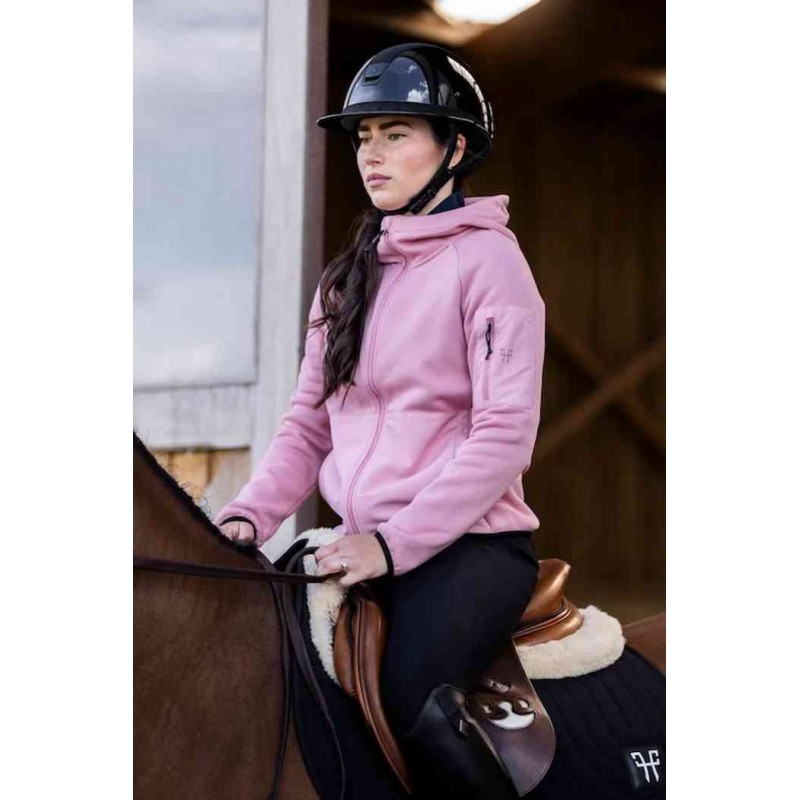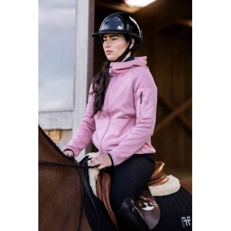 Sa capuche montante renforce la protection thermique de la veste. Un panneau en tissu rip-stop, placé sur la partie basse de la veste, protège la matière de la déchirure. Très polyvalente elle se porte toute l’année. Portée sous une veste de protection, comme une couche intermédiaire, elle apporte un supplément de chaleur. Elle peut aussi se porter seule, comme une veste, quand les températures sont plus douces. La capuche s’attache avec un bouton pression pour ne pas gêner le cavalier à cheval.