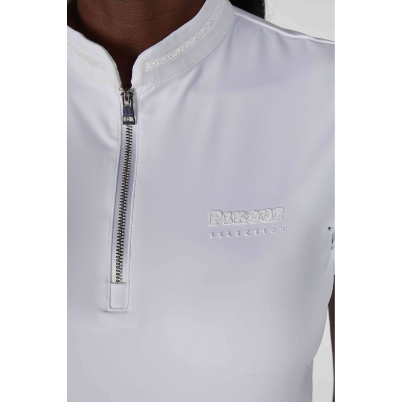 Le polo d’équitation Pikeur femme blanc est un vêtement technique et élégant, idéal pour les entraînements, les concours ou la pratique quotidienne de l’équitation. Conçu par la marque haut de gamme Pikeur, ce polo allie confort, respirabilité et style sportif chic. Fabriqué dans une matière technique respirante et extensible, ce polo d’équitation permet une évacuation efficace de la transpiration, assurant un confort optimal même par temps chaud. Sa coupe ajustée et féminine épouse la silhouette sans entraver les mouvements, offrant une grande liberté en selle comme à pied. Le col montant avec zip apporte une touche moderne et pratique, permettant d’ajuster l’ouverture selon les besoins. Son coloris blanc, sobre et élégant, le rend parfaitement adapté aux concours officiels, tout en restant facile à associer avec un pantalon d’équitation ou une tenue de compétition. Le logo Pikeur discret renforce l’aspect premium du polo. Ce polo d’équitation Pikeur pour femme est un indispensable pour les cavalières recherchant un haut d’équitation confortable, technique et raffiné, aussi bien pour la compétition que pour l’entraînement.