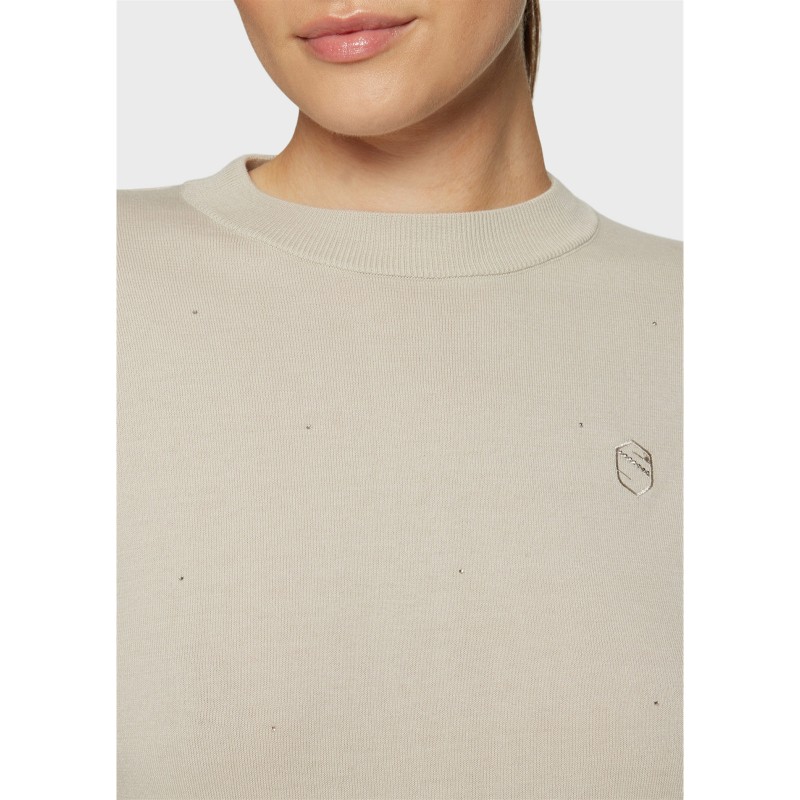 Le Phoebe est une maille pensé pour sublimer le quotidien des cavalières grâce à une élégance discrète et lumineuse. Confectionné en 100 % coton léger, il offre une sensation naturelle, douce et respirante, parfaite à porter toute l’année. Son col rond et sa coupe classique assurent une silhouette facile, tandis que les finitions en bord-côte au col, au bas et aux manches garantissent maintien et confort.