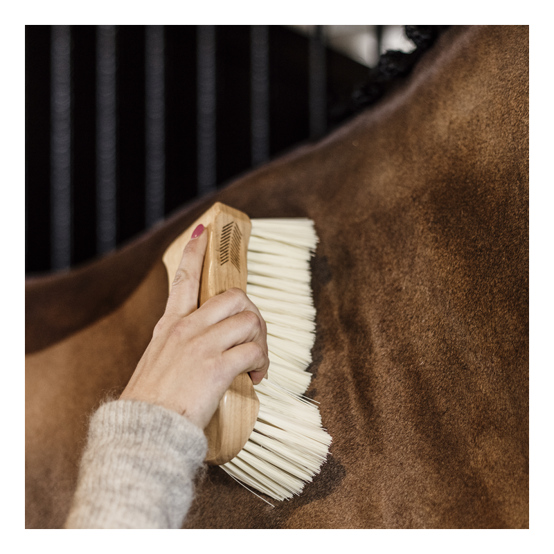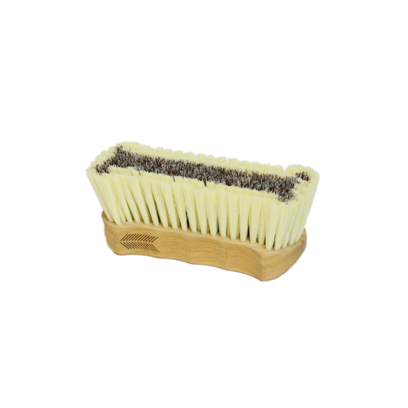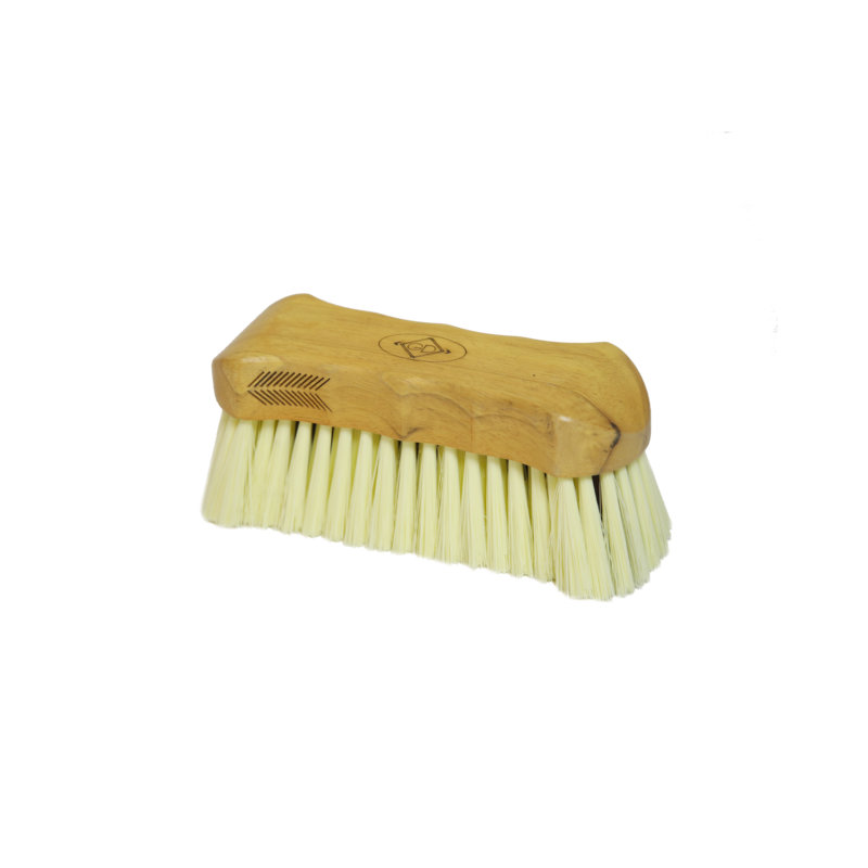 Cette brosse vernie possède de longs poils crèmes pour aider à enlever la saleté et les poils morts. Les poils en polypropylène sont souples, rendant cette brosse idéale pour une utilisation en été, lorsque le poil est plus fin, ou sur un cheval tondu. Les poils au centre sont également plus doux, pour une meilleure action de la brosse. Nettoyez votre brosse en la trempant dans l’eau chaude savonneuse et soyez certain de la garder pendant longtemps. Votre cheval deviendra la star des écuries grâce à cette brosse !