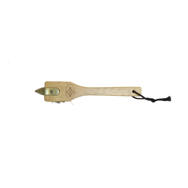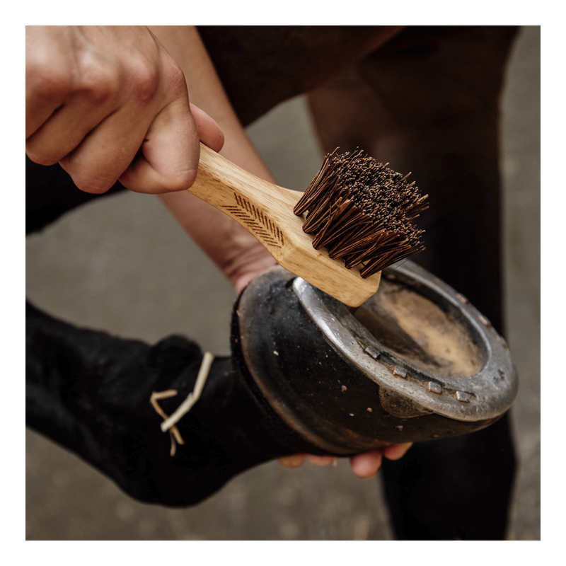 Ce cure-pieds verni en bois d’hévéa est parfait pour nettoyer les sabots de votre cheval ! Nous avons ajouté une petite brosse d’un côté, avec des fibres en polypropylène très résistants. Cela en fait une brosse très dure, idéale pour retirer le sable et la saleté des sabots de votre cheval. Le cure-pieds a deux grips et une forme anatomique. Nettoyez la brosse en la trempant dans l’eau chaude savonneuse et soyez certain de la garder pendant longtemps.