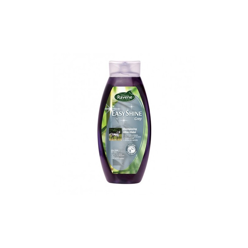 Shampooing pour chevaux gris/clairs Soleil, pluie, sueur et poussière... les crins et la robe de votre cheval sont agressés en permanence ! L'action déjeunissante de l'EasyShine Grey est idéale pour les chevaux gris ou clairs ! De plus, l'épiderme du cheval est plus fin que celui de l'homme et a un pH moins acide. Il convient donc d'utiliser les produits spécifiquement formulés pour les chevaux afin de respecter leur sensibilité cutanée et de réduire les réactions dermatologiques. EasyShine Grey apporte propreté, rend les crins et la robe visiblement plus brillants. Il ravive les couleurs et redonne vie aux poils ternis tout en respectant leur intégrité.