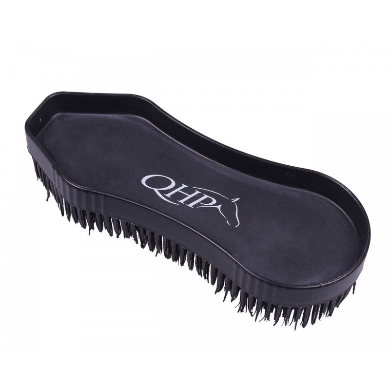 Cette brosse peut être utilisée non seulement comme une brosse ordinaire, mais aussi pour appliquer du shampooing, nettoyer les sabots, comme couteau de chaleur et pour enlever les poils des tapis de selle, par exemple.