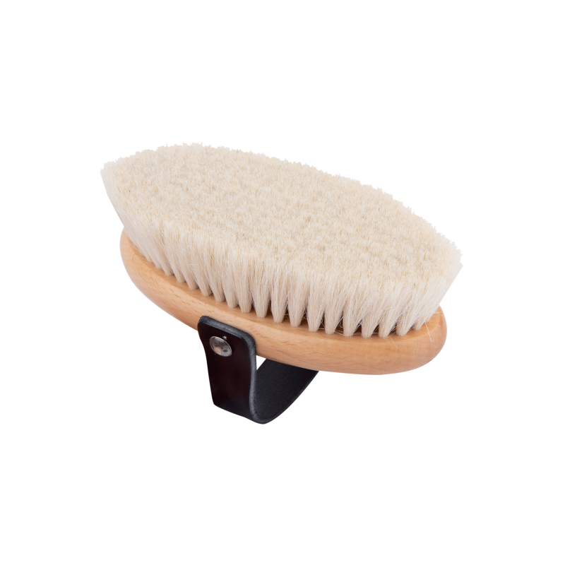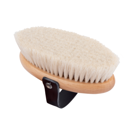 Avec cette brosse pour tête maniable entièrement composée de poils de chèvre denses et extrêmement doux, vous offrez à votre cheval une bonne dose de câlins bienfaisants qu’il saura apprécier tout particulièrement au niveau de la tête. Elle est idéale pour apporter la touche finale au pansage, rendant la robe de votre animal belle et brillante. Le poil de chèvre particulièrement doux et lisse ne laisse aucun grain de poussière dans la robe du cheval et devance la peau d’agneau pour son effet brillant. Les matériaux naturels ne génèrent aucune charge électrostatique.