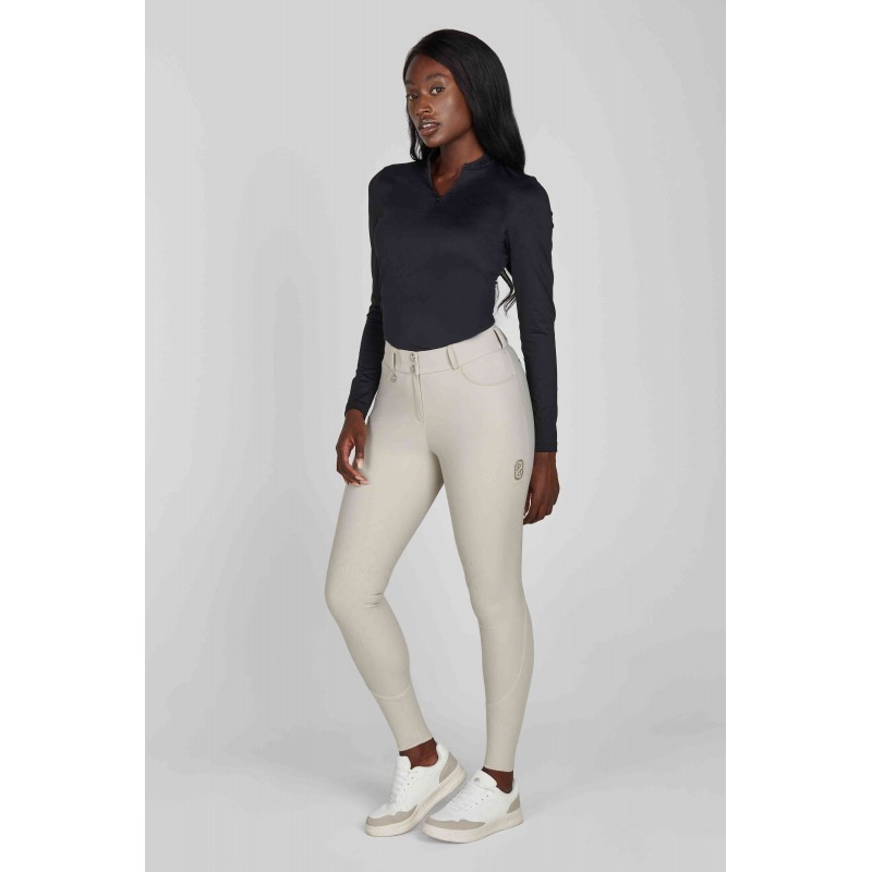Le pantalon d’équitation Pikeur pour femme est un indispensable pour les cavalières recherchant confort, technicité et élégance. Conçu par la marque allemande Pikeur, reconnue pour la qualité de ses vêtements d’équitation haut de gamme, ce pantalon répond parfaitement aux exigences de la pratique quotidienne comme de la compétition. Doté d’un full grip en silicone, ce pantalon d’équitation Pikeur offre une adhérence optimale en selle, améliorant la stabilité et la précision des aides, aussi bien en dressage qu’en saut d’obstacles. Le motif grip discret, signé Pikeur, apporte une touche moderne et élégante. Sa matière technique extensible, respirante et résistante garantit une liberté de mouvement maximale et un confort durable, même lors d’un usage intensif. La coupe ajustée met en valeur la silhouette tout en assurant un excellent maintien. Les bas de jambes stretch facilitent l’enfilage et s’adaptent parfaitement sous les bottes ou les mini-chaps. Les poches arrière zippées décoratives et le logo Pikeur renforcent le style chic et sportif de ce pantalon d’équitation femme.