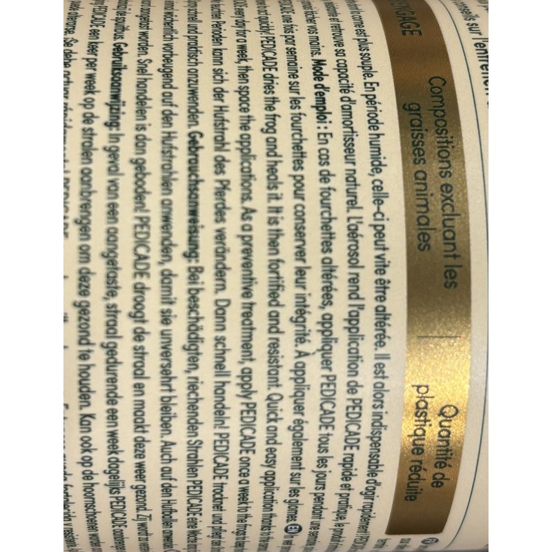 Pedicade assèche la fourchette et l'assainit. Elle est alors fortifiée, résistante et retrouve sa capacité d'amortisseur naturel.