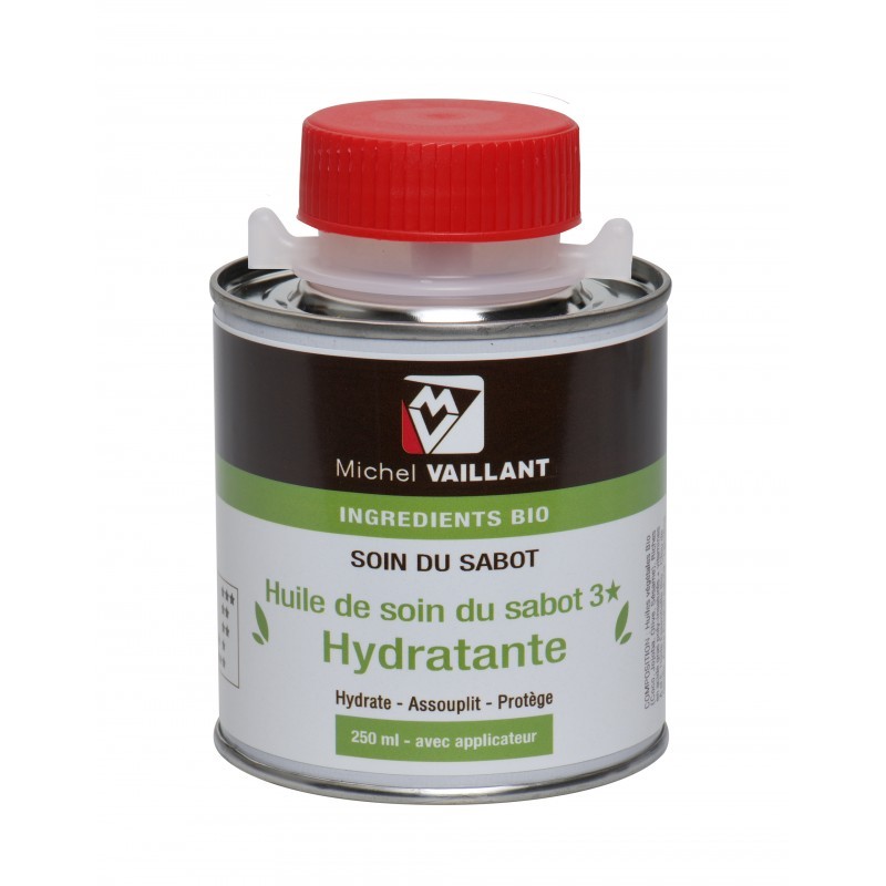L’Huile de soin du sabot Hydratante 3* Michel VAILLANT est une formule liquide composée d'huiles végétales Bio et de produits naturels extrêmement riches.