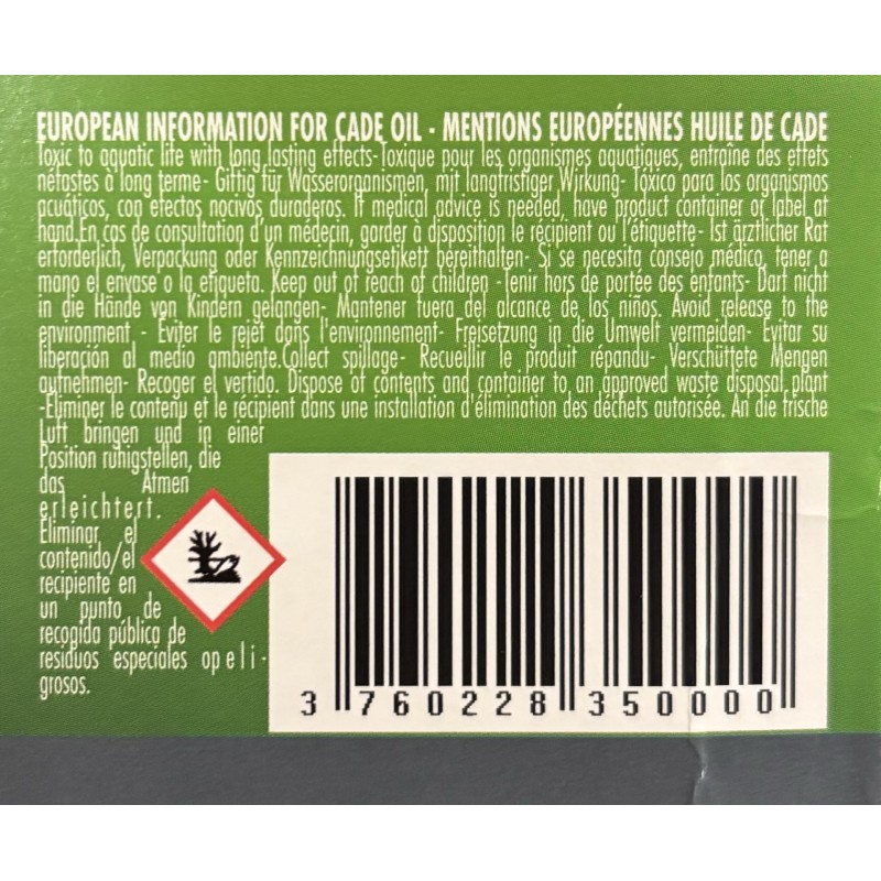 - Produit noir, tachant et à l’odeur puissante et tenace.