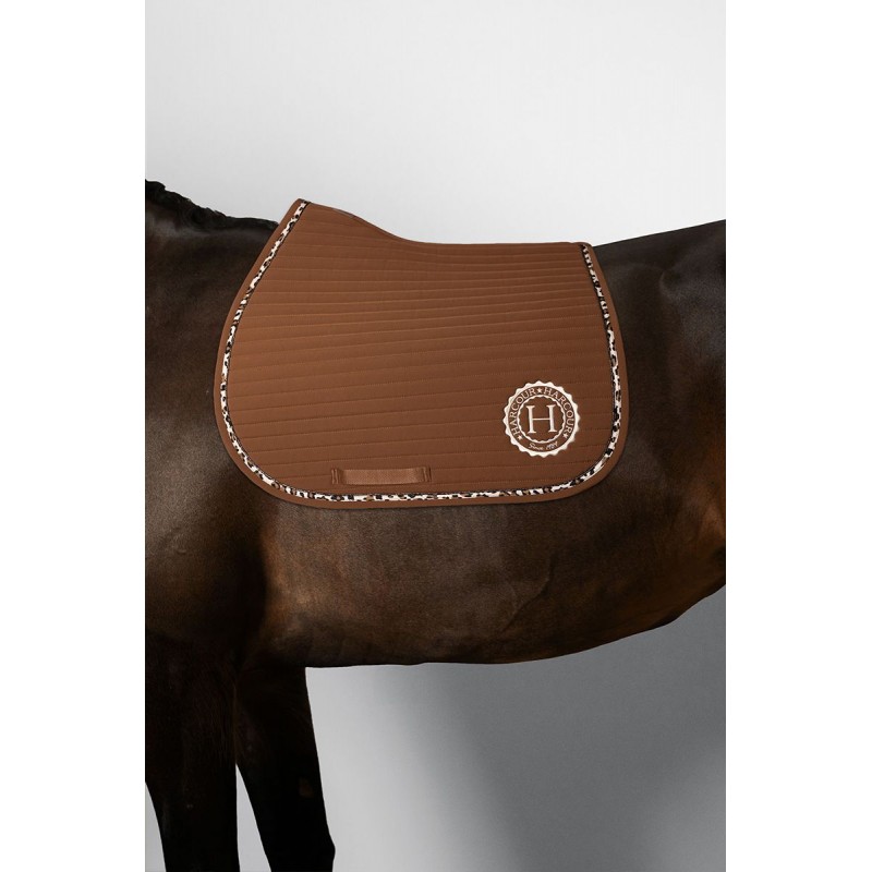 Découvrez le nouveau tapis Harcour, une pièce d’exception issue d’une collaboration exclusive avec leur ambassadrice. Alliant élégance, technicité et confort, ce tapis incarne parfaitement l’esprit de la marque : un design raffiné au service de la performance. Conçu avec des matériaux de haute qualité, ce tapis offre une respirabilité optimale et un excellent amorti pour le bien-être du cheval. Son style moderne, sublimé par des finitions soignées et des détails signature, en fait un incontournable aussi bien à l’entraînement qu’en compétition. Pensé pour les cavaliers exigeants, ce tapis garantit un maintien parfait sous la selle tout en apportant une touche tendance et haut de gamme à votre équipement.