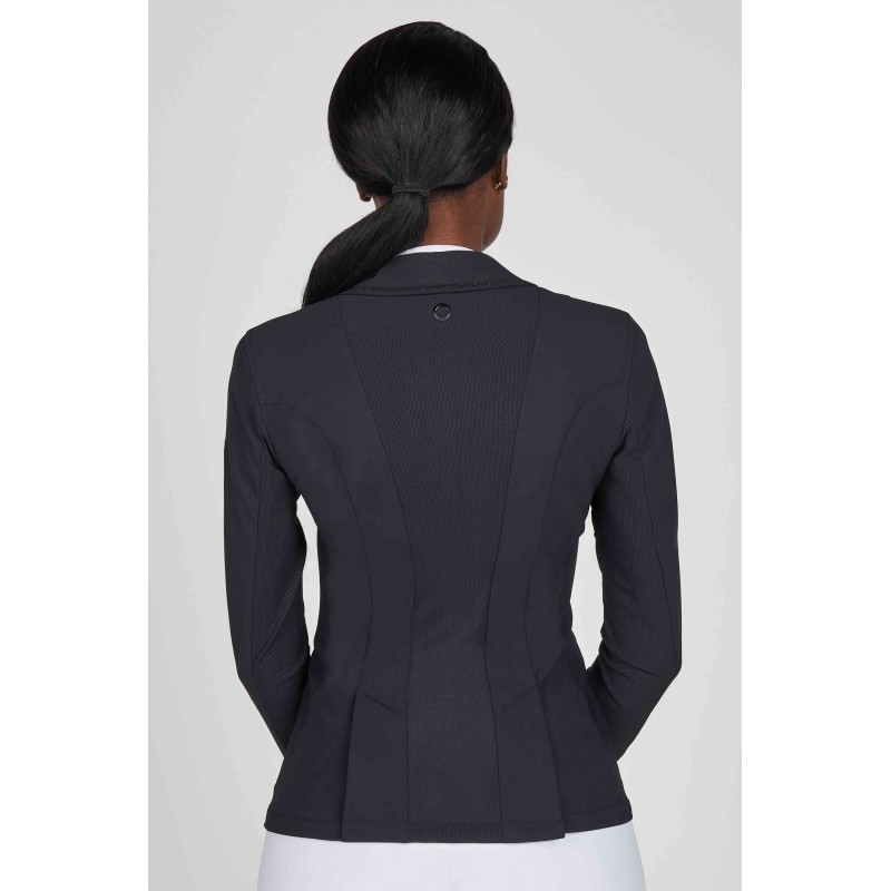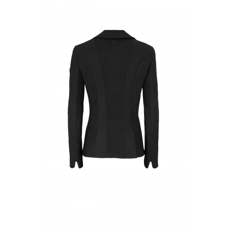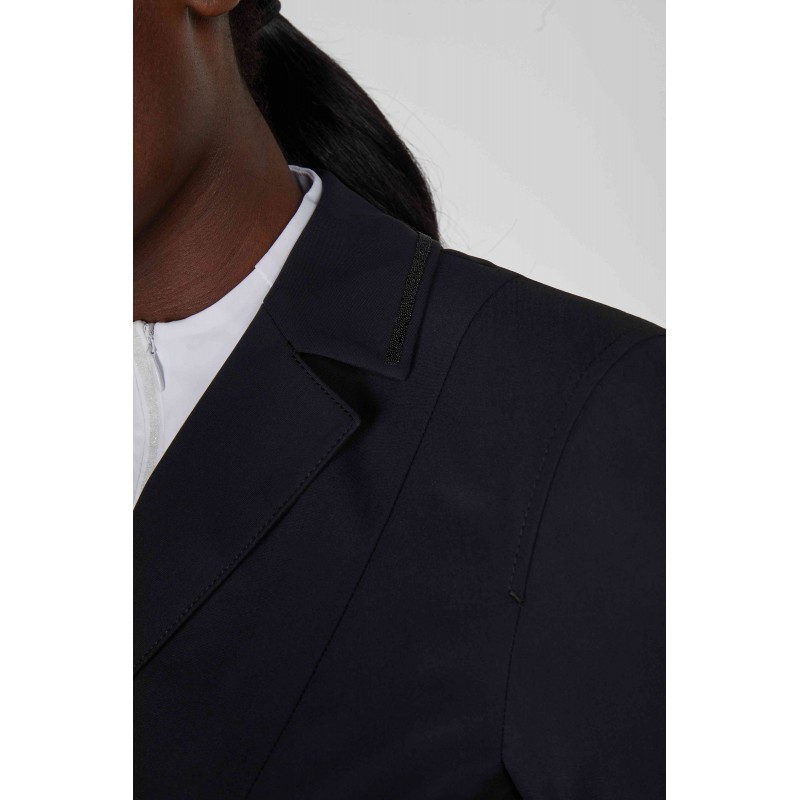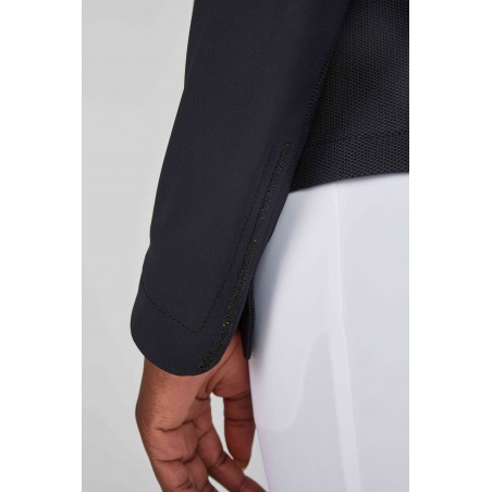 Optez pour l’excellence avec cette veste de concours Pikeur noire, conçue pour les cavalières exigeantes recherchant à la fois élégance, performance et sécurité. Véritable référence en vêtement de concours d’équitation, Pikeur allie ici design moderne et technicité avancée. Sa coupe féminine ajustée met en valeur la silhouette tout en garantissant une liberté de mouvement optimale à cheval. Les détails brillants subtils apportent une touche sophistiquée et raffinée, idéale pour se démarquer avec élégance sur les terrains de concours. Au dos, les empiècements en mesh respirant assurent une excellente respirabilité et une régulation thermique efficace, même lors des épreuves intenses. Cette veste de concours est également compatible avec le port d’un airbag , offrant confort et sécurité sans compromettre le style. Confectionnée dans une matière technique stretch, elle garantit souplesse, maintien et confort tout au long de la compétition, que ce soit en CSO, dressage ou concours complet.