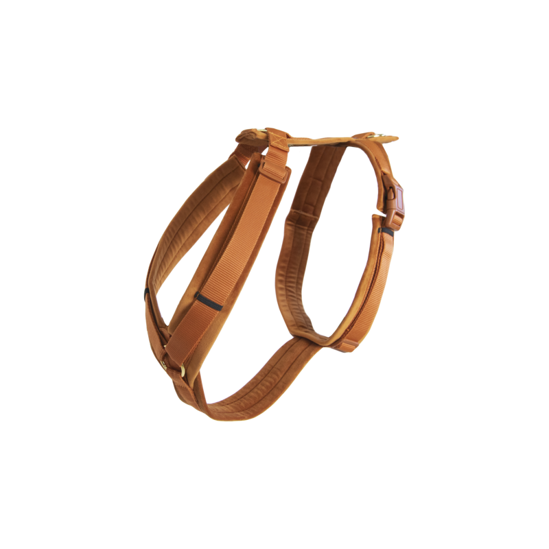 La base du harnais est un nylon solide, très résistant aux déchirures. Les renforts en velours sont extrêmement doux et donc confortables à porter. Ils évitent les frottements du pelage et répartissent uniformément la pression sur le poitrail du chien. Pour un effet amortissant supplémentaire, le renfort en velours est pourvu d'une mousse. Les 2 clips sont très solides et durables pour assurer la sécurité de votre chien.