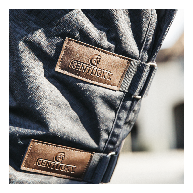 Le couvre cou d’extérieur peut être utilisé en combinaison avec nos couvertures d’extérieur. Il est disponible en deux grammages différents - 0 et 150 grammes – pour que vous puissiez l’adapter aux besoins de votre cheval. La partie extérieure est faite d’un tissu « ripstop » 600D, ce qui rend ce couvre cou résistant à beaucoup de conditions climatiques. Il est entouré de nylon, avec un intérieur en PES 210T, qui offre la même sensation au toucher qu’un sac de couchage. Le cou est fixé à la couverture avec quatre fermetures velcro et se ferme grâce à deux autres fermetures velcro . Lavable en machine à 30 °, pas de sèche-linge.