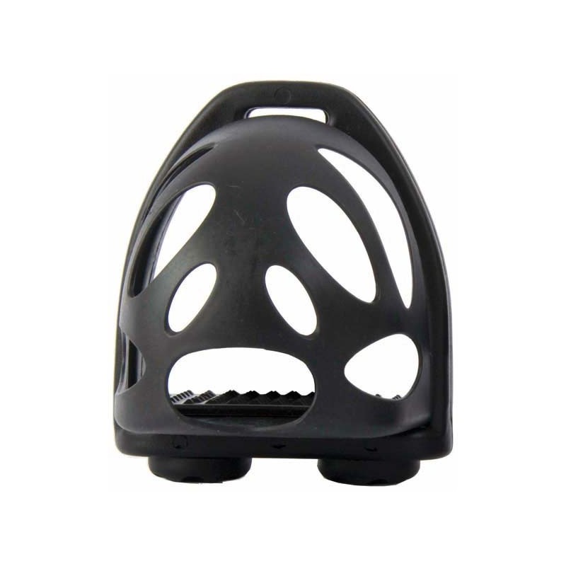 Cette coque permet de ne pas du tout laisser passer le pied et augmente la sécurité en selle.