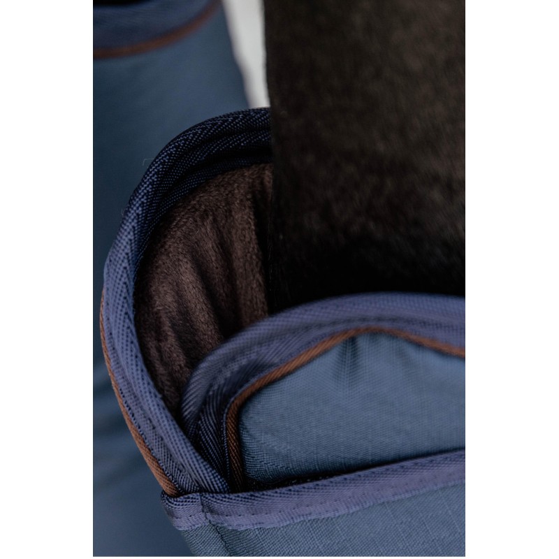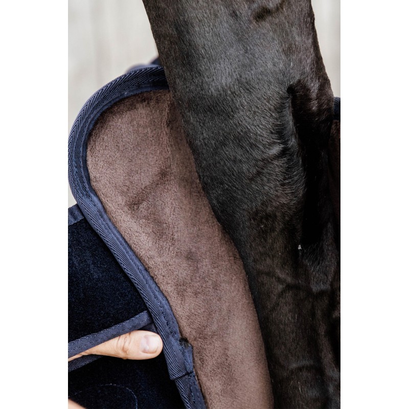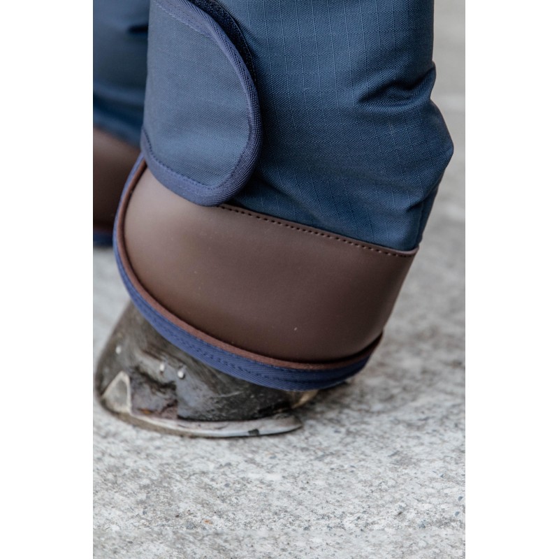 L'extérieur des guêtres de transport est fabriqué dans un polyester ripstop 600D résistant. Le ripstop est une technique de tissage spéciale qui rend le tissu plus résistant à la déchirure et au déchirement. La zone du paturon est renforcée avec du cuir artificiel Kentucky. La zone sensible du talon est ainsi mieux protégée. Les bottes de voyage sont doublées de peau de lapin artificielle. Outre un confort accru, la peau de lapin artificielle évite les marques de frottement et régule la température de la jambe. Une mousse absorbant les chocs est ajoutée à l'intérieur des bottes pour offrir une protection maximale. Tous ces matériaux sont légers, respirants, durables et assurent le bien-être de votre cheval lors de ses déplacements.